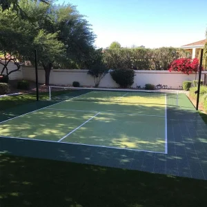Each sport court is crafted using high-performance modular flooring designed to deliver superior traction, shock absorption, and durability. These cutting-edge athletic surfaces are ideal for kids and adults alike, helping reduce strain on joints and making outdoor play safer and more enjoyable.